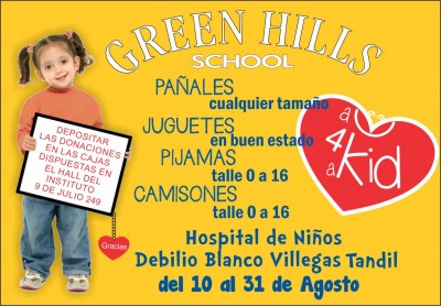El departamento de kinder junto con el de niños estan trabajndo un proyecto anual que se llama ALL ABOUT ME, todo acerca de mi. Hemos hecho coincidir este mes del dia del niño con el tema: Yo y los demas. Asi se pidio autorizacion a la Dra Marta Brea, jefa del hospital de niños de Tandil para realizar la colecta y que nos permita llevar lo recolectado al hospital de niños.